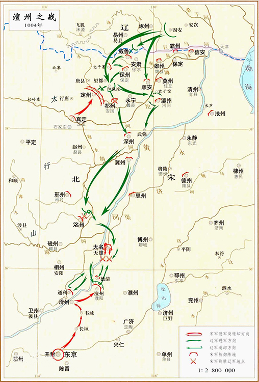北宋景德元年(1004年)闰九月,辽国萧绰太后及其子辽圣宗耶律隆绪率兵20万,以收复瓦桥关(在雄县南)失地为名,深入宋境,但遭到北宋军民的坚决抵抗。
